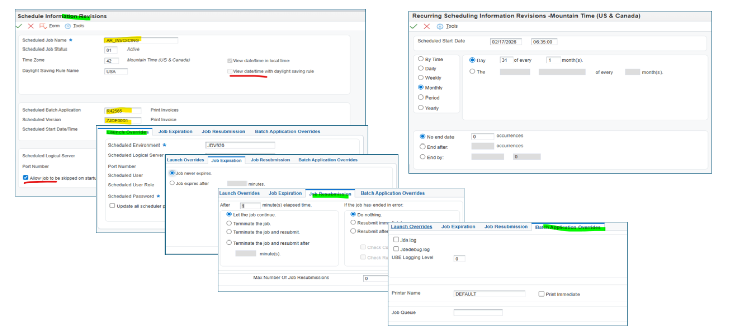 The Job Scheduler (P91300W), now available on the web client in Tools 9.2.26.0, has the same functionality available as on the Windows Development Client, but it is much more efficiently designed and easier to use! As with the original development client Job Scheduler, to begin using you must set up at least one version of P91300W in Interactive Versions such as TEST0001. Once you've created a version, you can Fast Path to "P91300W TEST0001".
