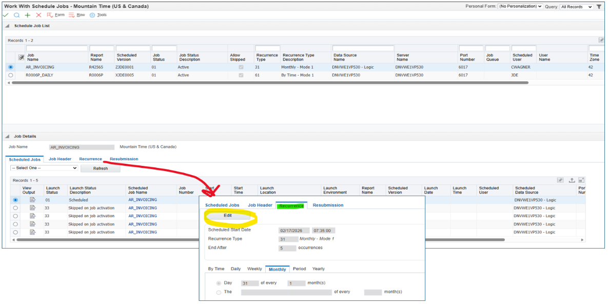 Once it's saved, there are quick actions you can take in the bottom Job Details area including jumping to quickly edit the scheduled job's Header or Recurrence - this is what makes this new web application so easy to use!