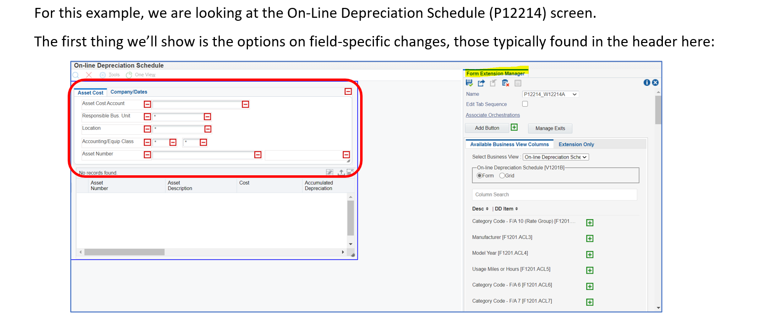New in Release 26 is the ability to use Form Extensions in Power Edit Forms! This would be applications such as Sales Order Entry’s Order Header Revision (P42101/W42101E) and Managing Work Orders (P13730 W13730A).