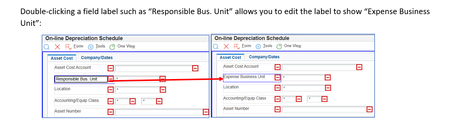 - Fields can be moved between Tabs in a screen by moving the field out of the original Tab to the header, clicking the destination Tab, then moving the field out of the header and into the destination Tab.