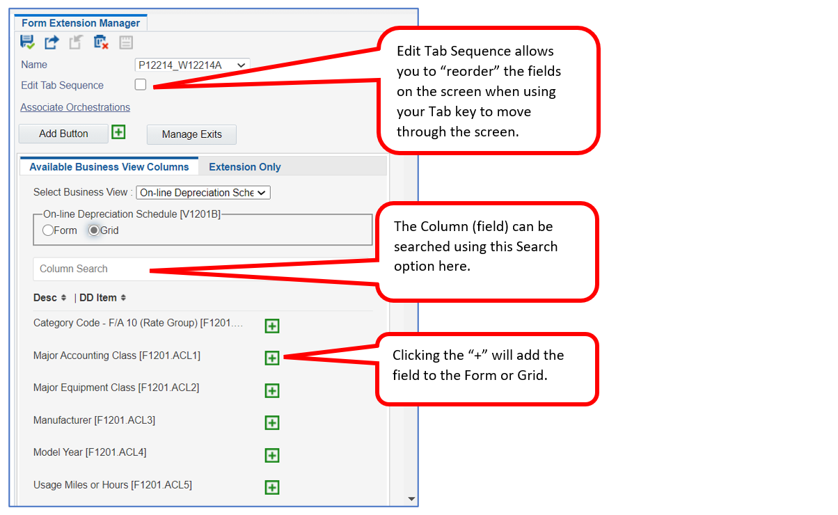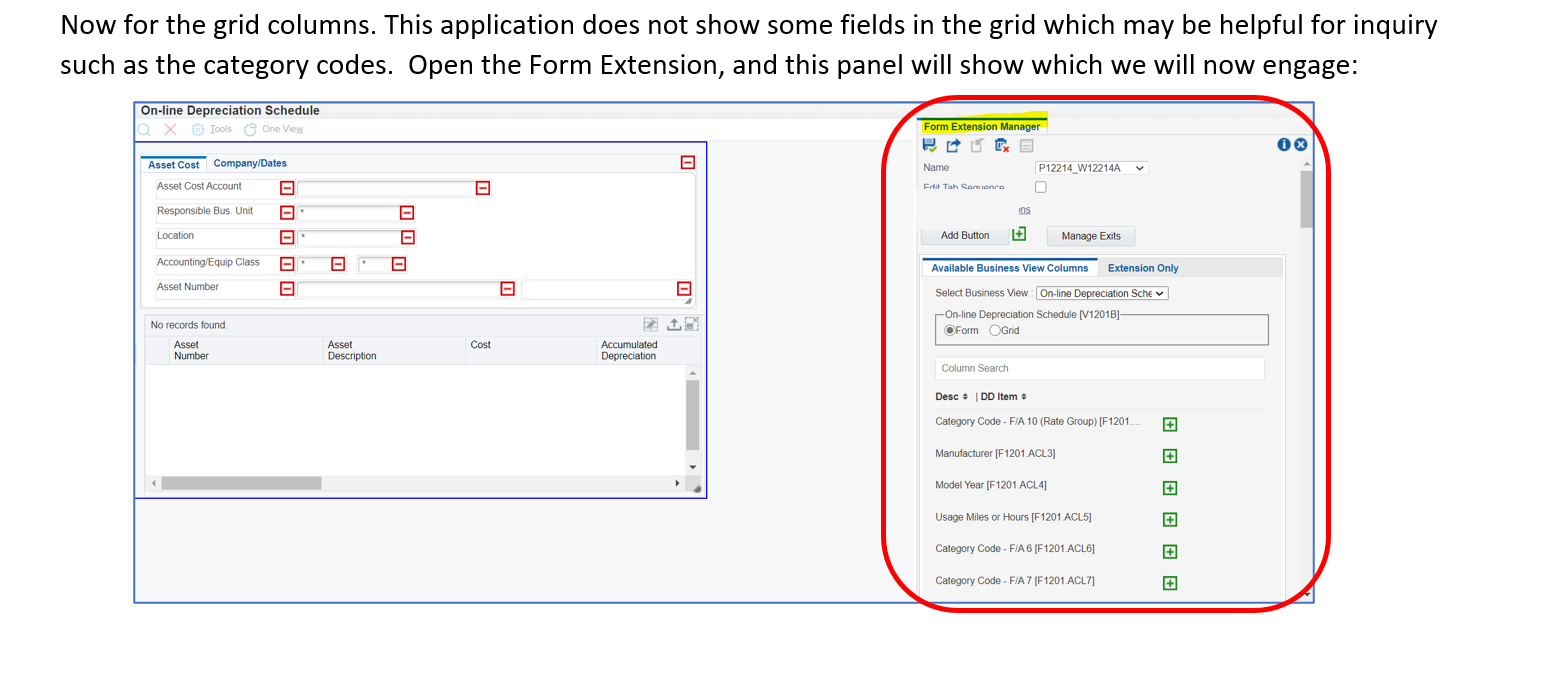 This is a link to My Oracle Support’s Doc ID 2384606.1 , Understanding JDE Form Extensions.